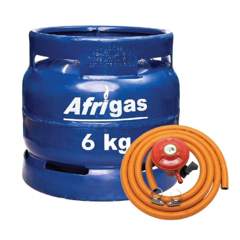 A "complete" Afrigas 6kg package generally refers to the gas-filled cylinder along with essential cooking accessories.